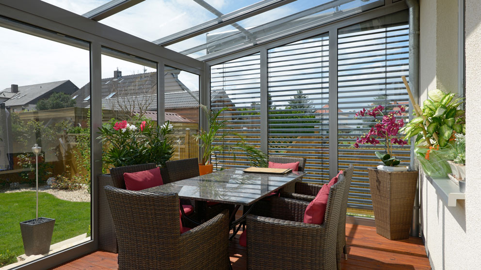 Zur Fertigung der Terrassendächer verwenden wir Profile aus Aluminium. Aluminium ist ein Werkstoff, der für diese faszinierende Bauart am besten geeignet ist. Aluminium ist formschön, absolut wetterbeständig und erfordert kaum Pflegeaufwand. Aufgrund der guten physikalischen Eigenschaften des Materials können sehr schmale, filigrane Konstruktionen gefertigt werden, die dennoch alle Anforderungen an die Statik erfüllen. Eine Terrasse kann auch nachträglich mit Fest- oder Öffnungselementen geschlossen werden. Es ist sogar möglich, alle drei Seiten einer Terrassenüberdachung mit Elementen zu versehen. Man spricht dann von einem "Kaltwintergarten".