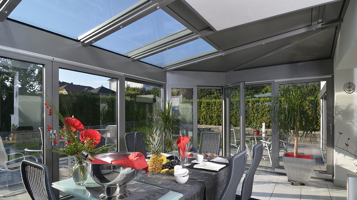 Ein Wintergarten bietet eine Vielzahl von Einbauelementen und Komfortlösungen. Für die sogenannte „Ausfachung“ stehen verschiedene Möglichkeiten zur Verfügung: Festverglasungen oder unterschiedliche Öffnungselemente.